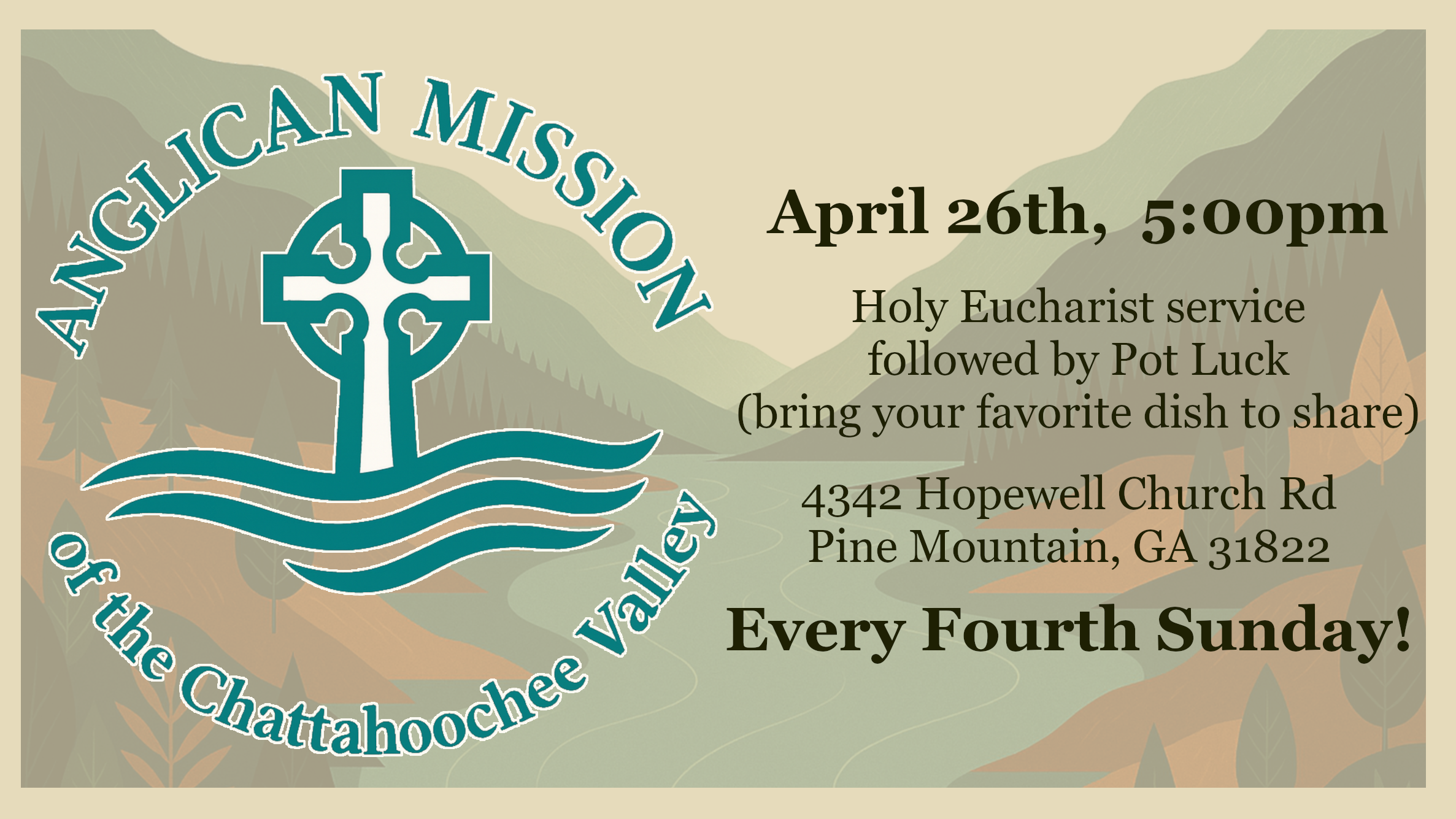 Based in West Georgia, we are an Anglican community rooted in Scripture and nourished by the Sacraments. We gather from Muscogee and Harris Counties and beyond, to love God, serve the lost, and live out an ancient faith in a modern world.